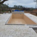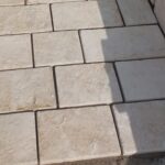 Die MAESTRAL ANTIK Platte ist eine speziell bearbeitete Natursteinplatte, die durch Schneiden (Sägen) auf bestimmte Maße und anschließendes Trommeln (Bürsten) entsteht. Dieser Prozess entfernt scharfe Kanten und verleiht dem Stein eine glatte, leicht unregelmäßige Oberfläche mit einem antiken, rustikalen Charakter.
