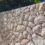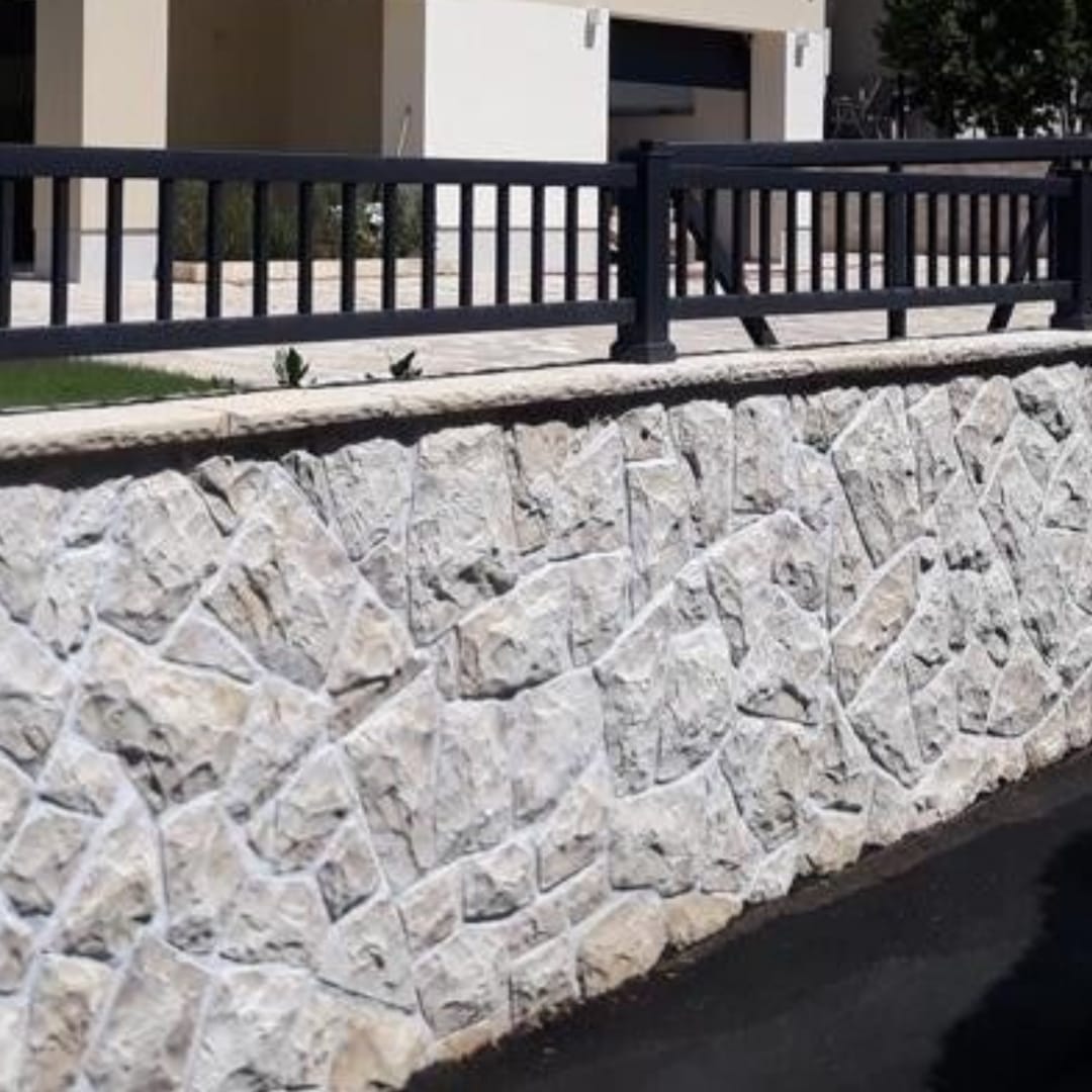 URSA Rustikal ist ein handgefertigter Naturstein mit unregelmäßiger Form, der hauptsächlich für die Verkleidung von vertikalen Flächen wie Wänden, Zäunen, Säulen und Fassaden verwendet wird. Seine Farbpalette reicht von glasigem Weiß über Dunkelgrau bis hin zu bläulichen Tönen, abhängig von der spezifischen Steinstruktur.